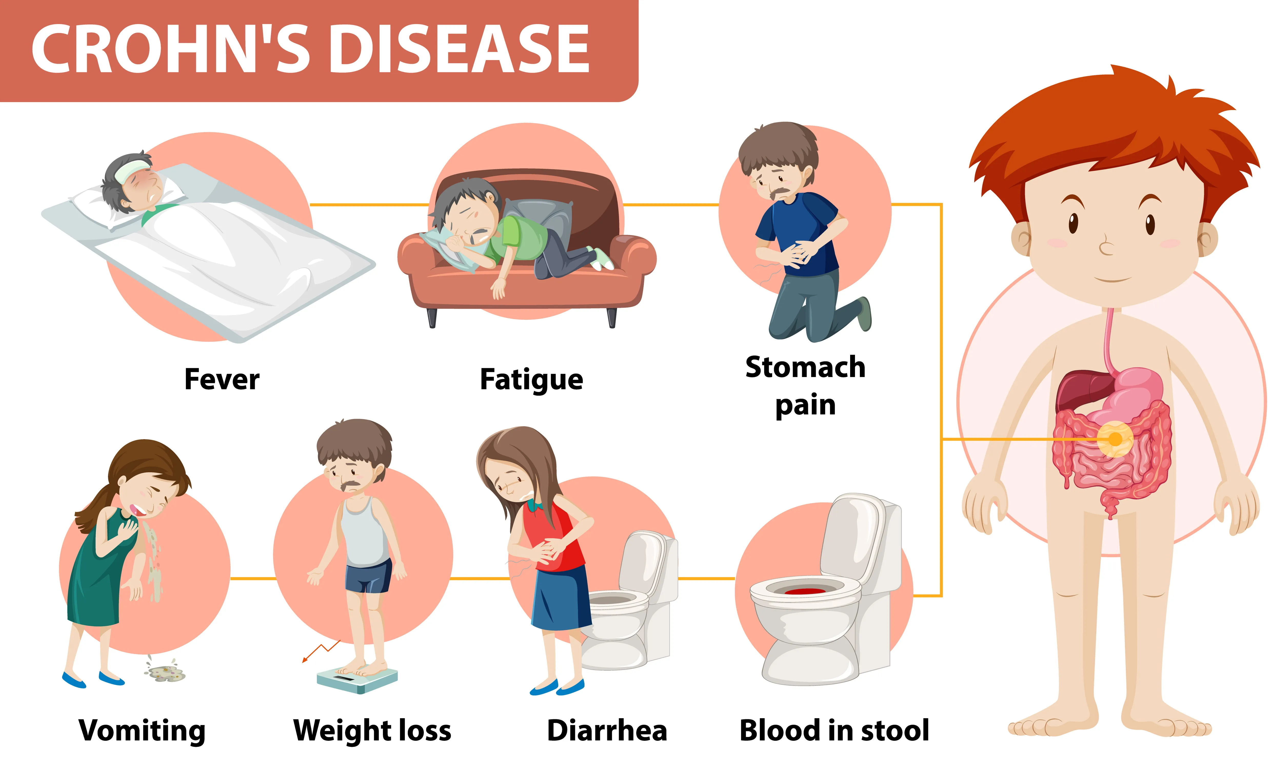 同じ炎症性腸疾患である潰瘍性大腸炎と同様に「活動期(症状が強く現れる時期)」と「寛解期(症状が治まっている時期)」を長期間にわたって繰り返し、肛門にも病変ができやすいことが知られています。